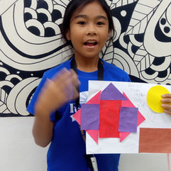 Gradeschoolers show their Geometry Project. They also did Math Relay, Shape Hunt and Quiz Bee!